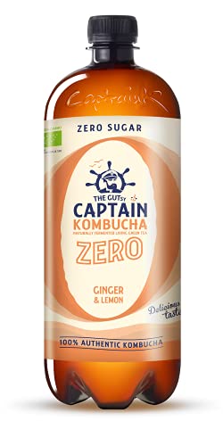 Captain Kombucha ZERO - Zero Sugar, Zero Calories - Bebida Probiótica Naturalmente Fermentada, Sin Pasteurizar, Vegan - 1000ml (Original)
