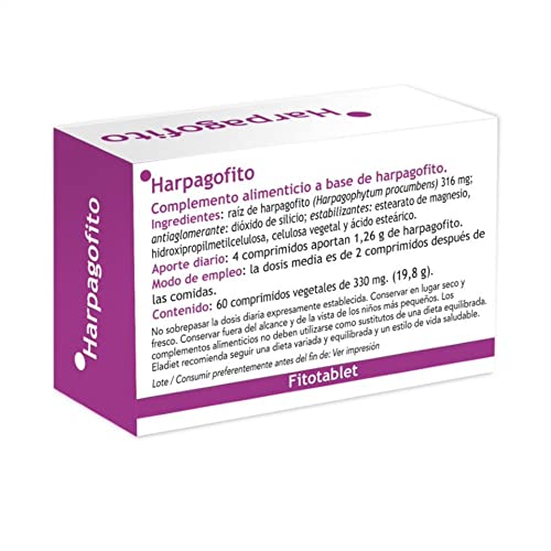 Complemento Alimenticio de Raíz de Harpagofito - 60 Comprimidos - Ayuda a Mejorar el Tránsito Intestinal - Favorece el Cuidado de las Articulaciones - Eladiet