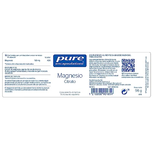 PURE ENCAPSULATIONS Magnesio Citrato | Mineral Esencial, Presente en los huesos y mayor parte del tejido humano | 90 cápsulas vegetales