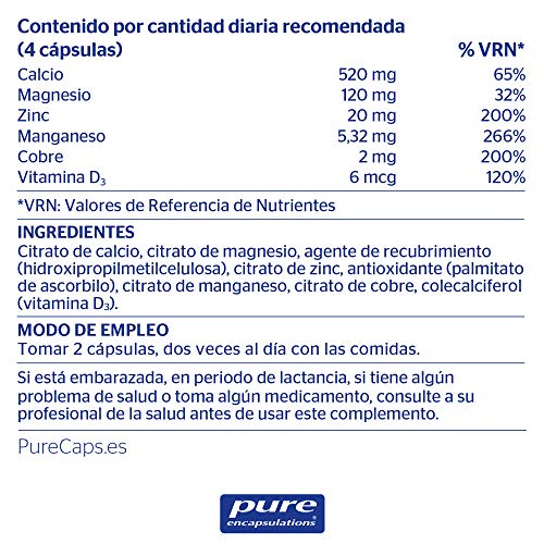 PURE ENCAPSULATIONS Complejo de Calcio | Magnesio, Zinc, Cobre y Manganeso con Vitamina D3| Ayuda la Estructura Ósea | Contribuye al Mantenimiento de los Tejidos Conectivos | 90 Cápsulas Vegetales