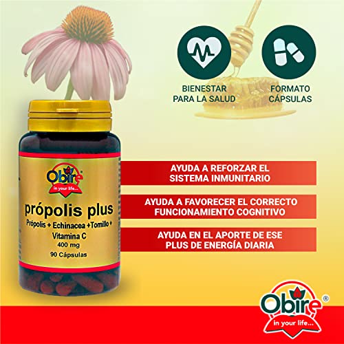 Obire | Própolis Plus 400 mg | 90 Cápsulas | Echinácea + Tomillo + Vitamina C | Ayuda a Reforzar el Sistema Inmune | Rico en Aminoácidos y Oligoelementos | 45 Días de Uso
