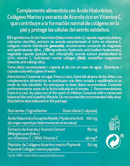 COLAGENOVA, Cápsulas de Ácido Hialuronico, Colágeno y Vitamina C, Suplemento Completo para la Piel, Contribuye a la Formación Normal de Colágeno en la Piel, 30 Comprimidos, 1 Pastilla al Día, 11 Gr