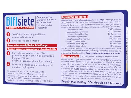 Probioticos Bifisiete 30 Cápsulas | Probioticos y Prebioticos Intestinales | 10 Mil Millones UFC | Alta Supervivencia Gastrointestinal | de Tongil