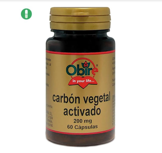 Obire | Carbon Vegetal Activado 200 miligramos | 60 cápsulas | Carbón Activo I Propiedades Depurativas y Digestivas I Detox