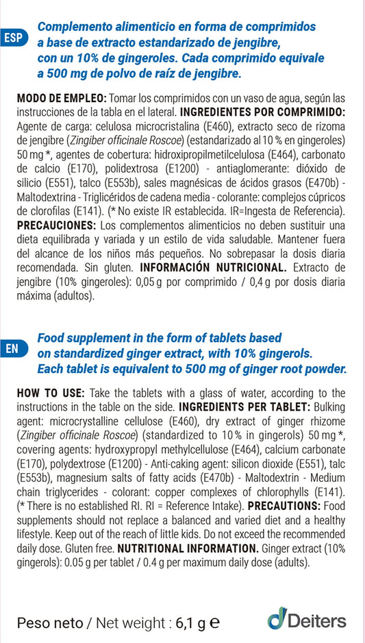 DEITERS - Nauserina Jengibre en 30 Cápsulas, Complemento Alimenticio, Pastillas para Embarazadas, Anti-mareo, Digestivas
