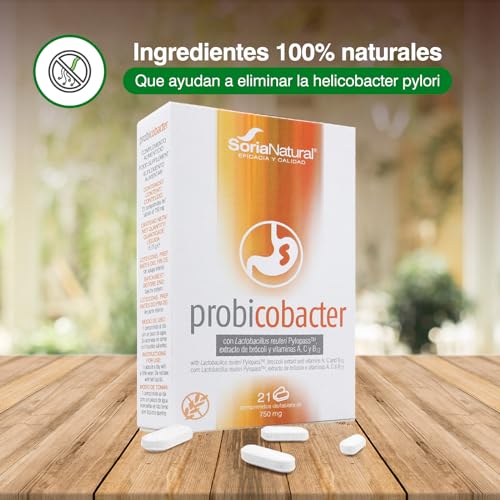 Soria Natural Probicobacter - con Lactobacillus reuteri PylopassTM, extracto de bróxoli y vitaminas A, C y B12 – Ayuda a la Eliminación de la Helicobacter Pylori - Caja con 21 comprimidos de 750 mg