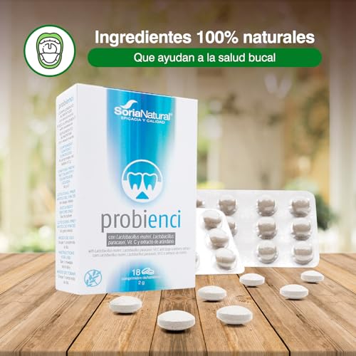 Soria Natural Probienci - Lactobacillus Reuteri, Lactobacilus Paracasei, Vitamina C y Extracto de Arándano – Favorece Salud Oral – Favorece la Salud de Dientes y encías - Caja con 18 comprimidos de 2g