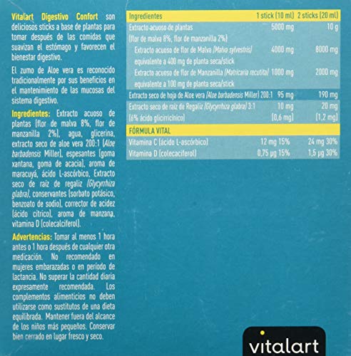 VITALART DIGESTIVO Confort 20sticks, Negro, Normal, 20
