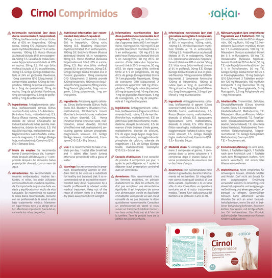 Sakai – Cirnol comprimidos con Ginkgo, Castaño de Indias y Rusco– Favorece la circulación sanguínea, ayuda a evitar las piernas cansadas y su hinchazón. Previene las varices vasculares. Con Coenzima Q10
