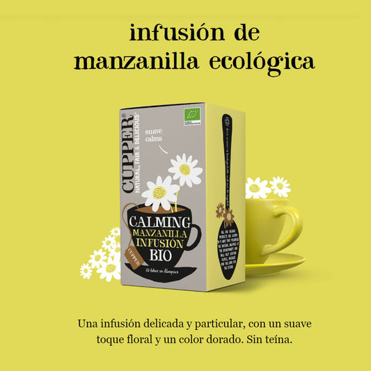 Cupper - 20 Bolsitas de Infusiones Ecológicas de Manzanilla - Sin Azúcar Añadido, Huevo y Teína - Apto para Veganos - Propiedades Refrescantes y Digestivas