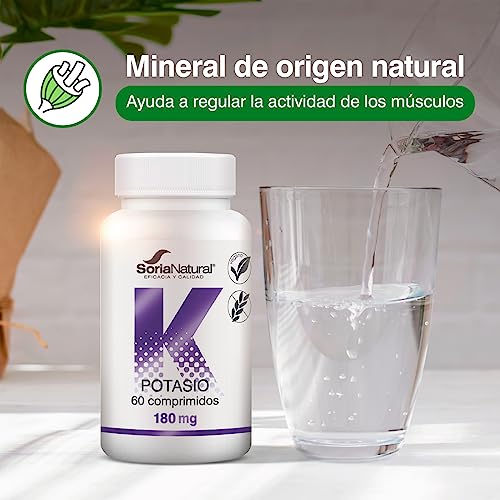 Soria Natural Potasio - MÁXIMA ABSORCIÓN - Ayuda a Regular la Actividad de los Músculos – Favorece al Sistema Nervioso - Liberación Sostenida para mejor asimilación - 60 comprimidos de 1.400 mg.