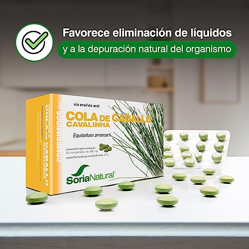 Soria Natural Cola de Caballo pastillas - Potente Diurético Natural - Drena Retención de Líquidos, Fortalece y Nutre tu Cabello y Uñas - Caja 60 comprimidos