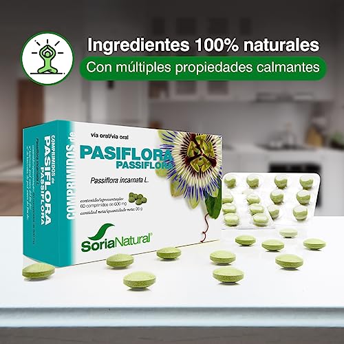 Soria Natural Pasiflora comprimidos - Sueño Tranquilo y Relajación Profunda - Calmante Natural - Para Noches Serenas - Caja con 60 cápsulas