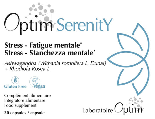 Ashwagandha y Rhodiola Rosea | Suplemento Natural para Bienestar y Relajación, Estrés - Calma y Sueño reparador | - Vegano - 30 Cápsulas | Optim Serenity