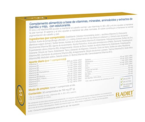 Complemento Alimenticio - VitaWoman - 30 Comprimidos - Contribuye a Mantener el Cabello, Piel y Uñas - Contiene Extractos de Bambú, Mijo, Vitaminas y Minerales - Eladiet