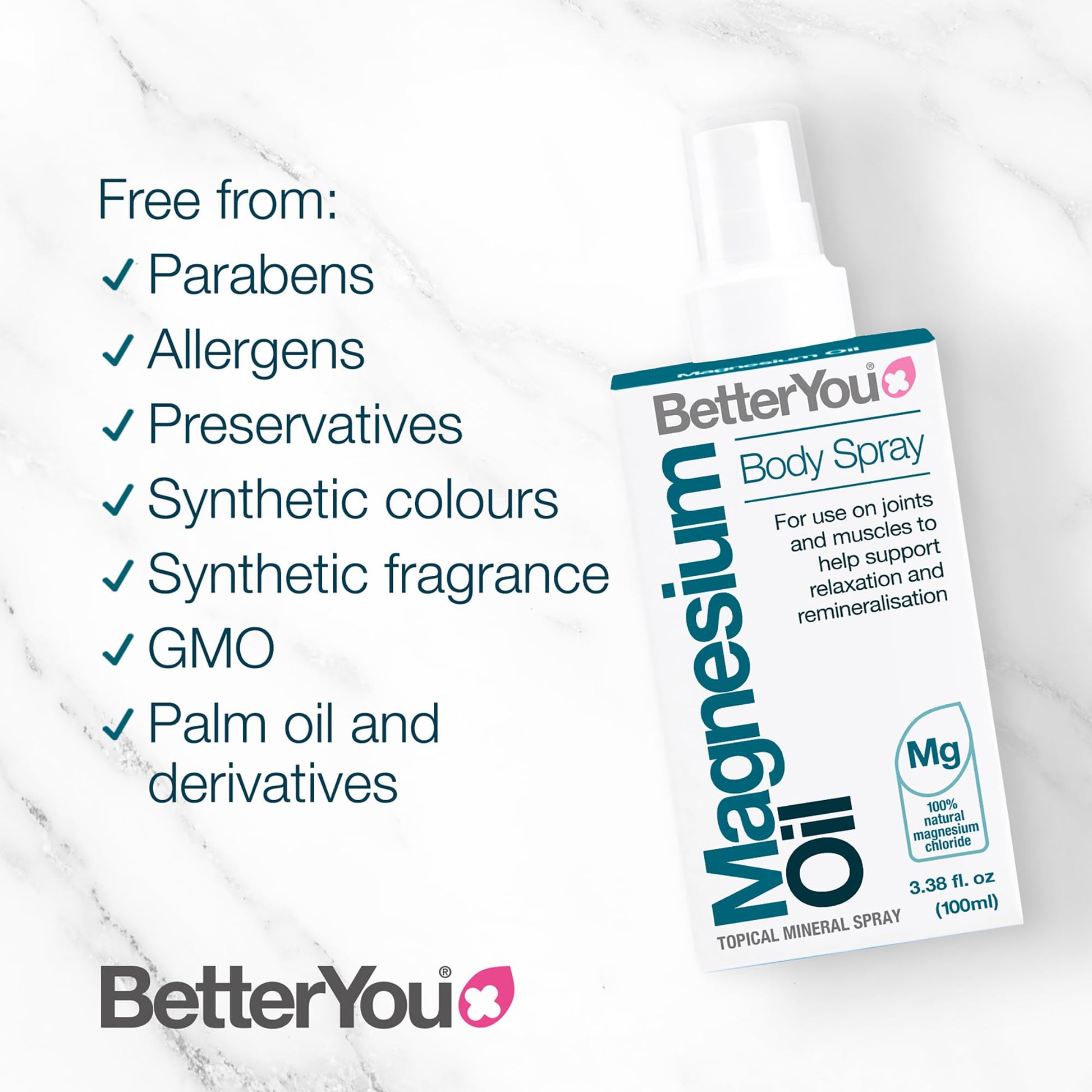 BetterYou - Aceite Corporal de Magnesio Transdérmico | Spray de 100 ml | Ayuda para Mejorar el Descanso y la Recuperación Muscular | Reducción del Cansancio y la Fatiga| Apto para Veganos