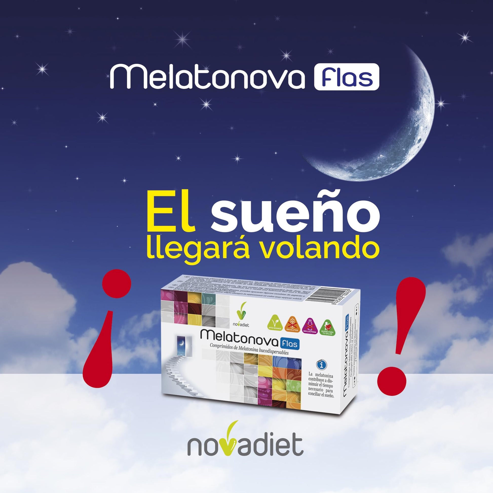 Novadiet - MELATONOVA FLAS Comprimidos de Melatonina - Complemento Alimenticio para un Sueño Reparador y Ayuda al Insomnio - Alivio del Desfase Horario - 30 Comprimidos Bucodispersables.