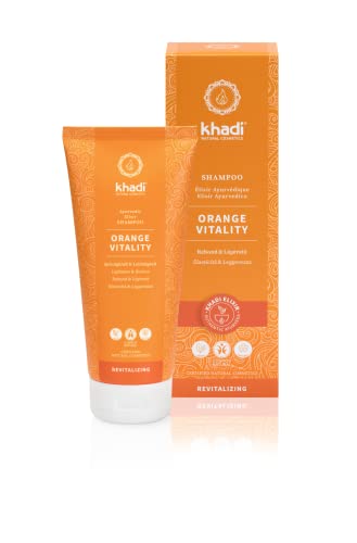khadi ORANGE VITALITY Champú ayurvédico, 100% naturales, veganos, sin silicona ni sulfatos, vitalidad, volumen y rebote, rizos definidos, contra el cabello graso, Cosmética Natural Certificada, 200ml