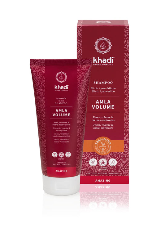 khadi AMLA VOLUME Champú ayurvédico, 100% vegano, sin siliconas ni sulfatos, Cabello potente y con volumen gracias a sus raíces fuertes, favorece el crecimiento del cabello, cosmética natural, 200ml