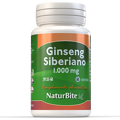NaturBite - Ginseng Siberiano 1000 mg | 60 Comprimidos | Mejora la Resistencia Física y Mental, Ayuda a Aumentar la Energía y Reducir el Estrés