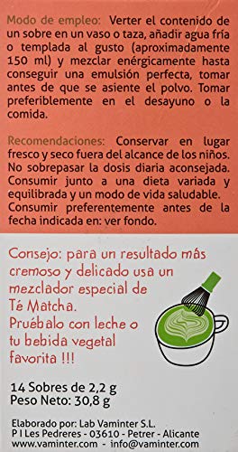 Vaminter - Té Matcha Diet - Elaborado con Té Matcha Orgánico - Complemento Alimenticio - 14 Sobres