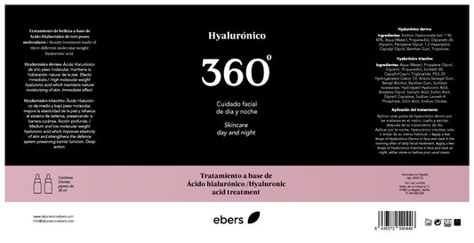 Ebers Hyalurónico 360º. Tratamiento intensivo día y noche a base de ácido hialurónico. Fórmula vegana. Hyaluronico Dermo (día) 30 ml + Hyarluronico Triactive (noche) 30 ml