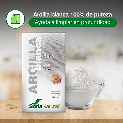 Soria Natural Arcilla blanca – Limpia en Profundidad – 100% de Pureza, Textura Fina, Origen Natural - Puede Utilizarse como Mascarilla Facial, Enjuague Bucal – Uso Interno y Externo – Bolsa de 250g.