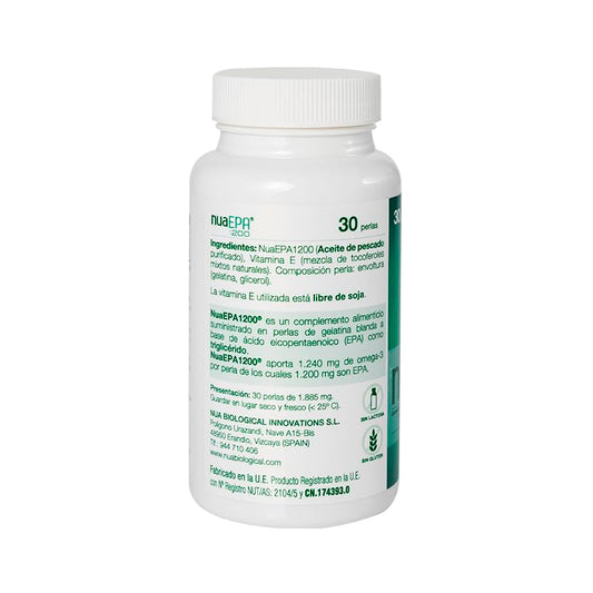 Nua Biological - NuaEPA 1200 - Food Supplement based on EPA (eicosapentaenoic acid) - Marine Omega 3 from Blue Fish - 30 capsules in the form of triglyceride (1200mg)