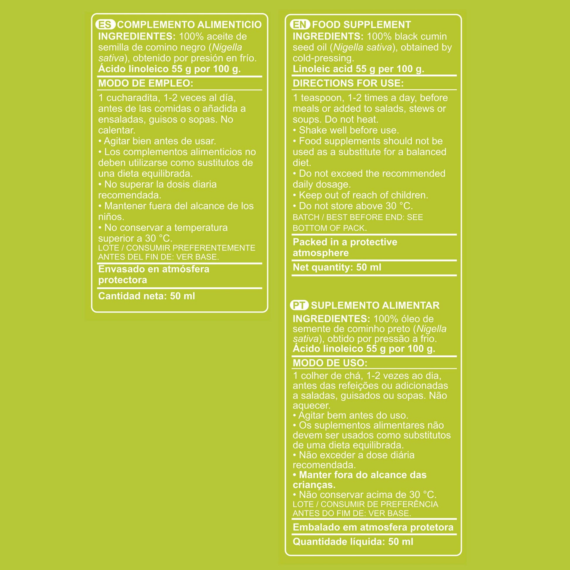 - ✔️ COMINO NEGRO LÍQUIDO. El Aceite Puro de Comino Negro MARNYS contiene aceite de Comino Negro en formato líquido obtenido por prensado en frío de las semillas de Nigella sativa. Este método de obtención garantiza el estado óptimo de todas sus propiedades.