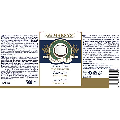 MARNYS Aceite de Coco Hidratante 100% Vegetal Dosificador 500ml