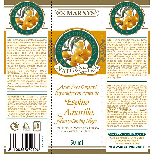 MARNYS Aceite Seco Reparador con Espino Amarillo, Neem y Comino Negro 100% Vegetal Spray 50ml