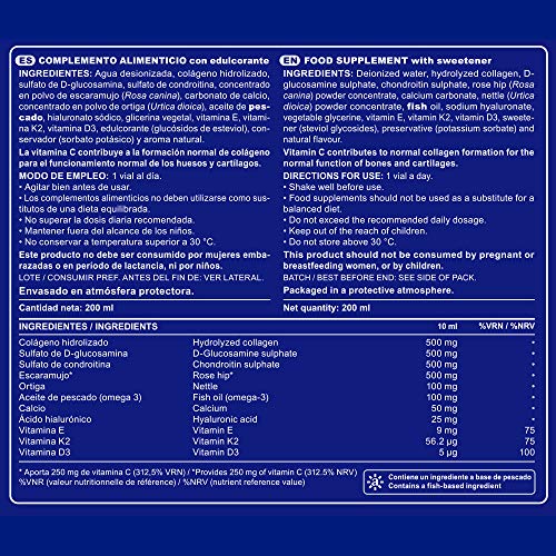 Artrohelp Forte - colágeno, glucosamina, condroitina, ácido hialurónico y vitaminas - Flexibilidad de Huesos y Articulaciones - 20 viales bebibles