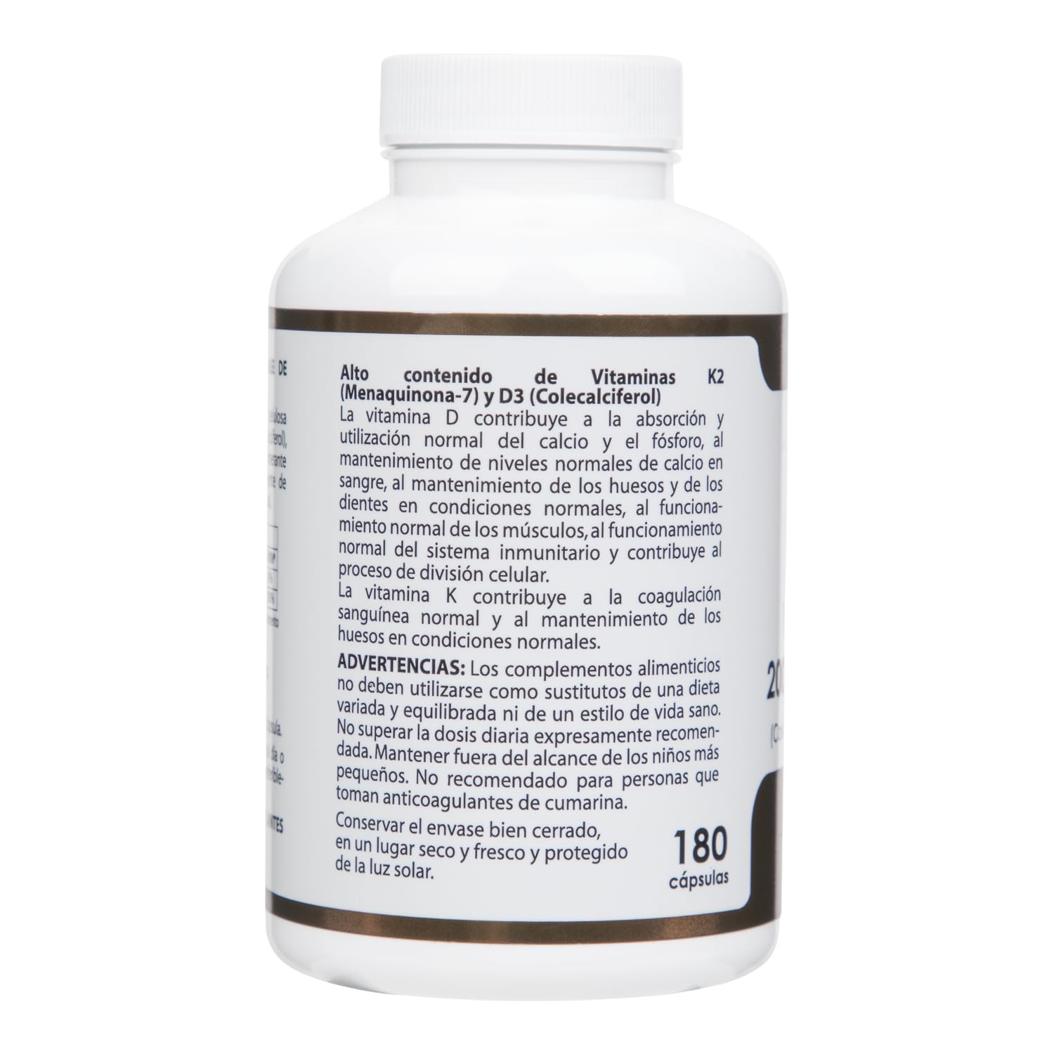Detalles: Descripción del producto Holovit Vit. D3 2000Ui + K2 60 µg 180Cap Equ Los Mejores Productos Para Tu Cuidado Personal, Para Tu Dieta, Para Tu Salud Y Para La Higiene Personal. Ingredientes MenaQ7®* Menaquinona-7, Colecalciferol. * Ingredientes de MenaQ7® además de vitamina K2: Maltodextrina 93-95 %; Ácidos grasos 5-7 % ,ácidos grasos saturados 85-87 %; monoinsaturados 5-10 %, poliinsaturados 4-9 %). ** Los ingredientes de la vitamina D3, por orden decreciente son: Sacarosa; Almidón de maíz; Goma arábiga; Triglicéridos de cadena media; Fosfato tricálcico; vitamina D3 (colecalciferol); D-alfa-tocoferol. Envoltura: Polisacárido de origen vegetal (pululano). Advertencia de seguridad Conservar en lugar seco, fresco y no expuesto a la luz solar. Aviso legal No superar la dosis diaria recomendada. Los complementos alimenticios no deben utilizarse como sustitutos de una dieta variada y equilibrada.