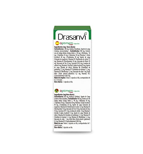 DRASANVI Optimem Forte con Fosfatidilserina, Fosfatidilcolina y Aminoácidos| Sistema Nervioso y rendimiento intelectual | con Vitaminas del Grupo B, ácido fólico y Selenio |45 Cápsulas = 22 Días