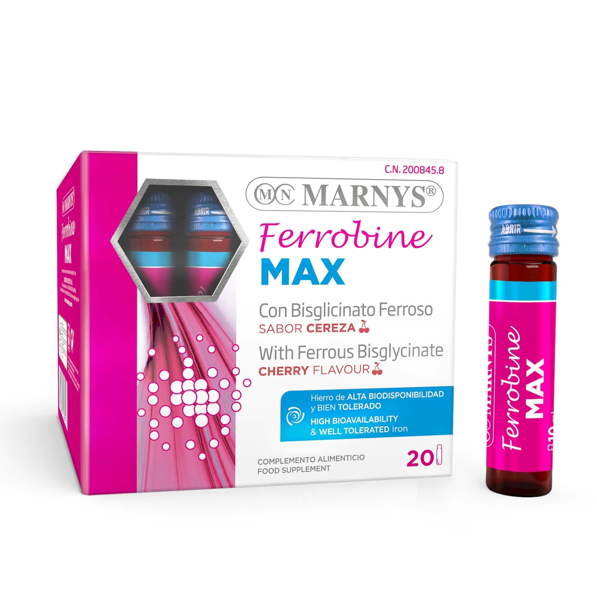 Ferrobine Max - Hierro, Zinc Y Vitaminas - Fortalecer el Cuerpo, Aliviando Cansancio y Fatiga - Para 1 Mes - 20 Viales Monodosis Con Sabor Cereza