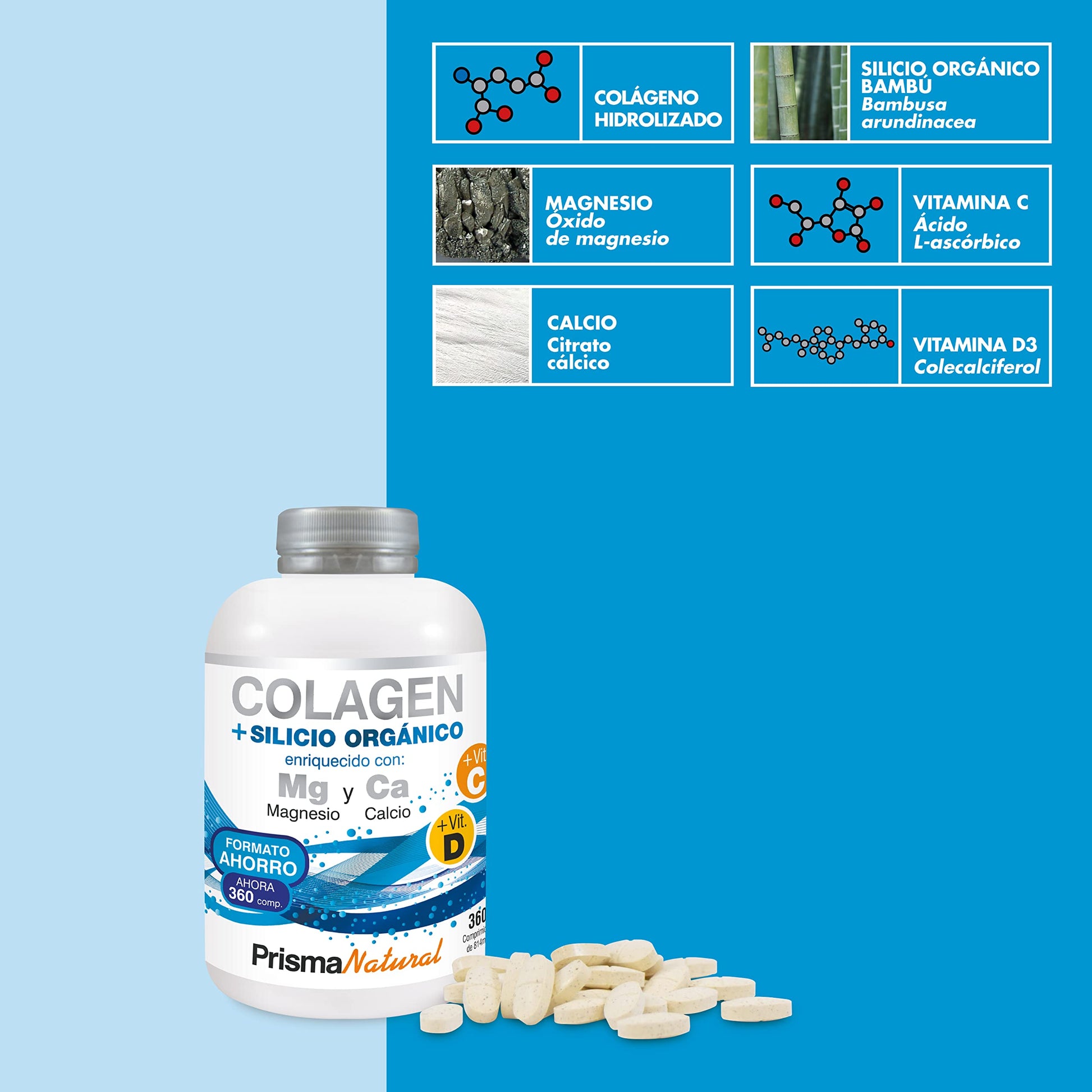 Prisma Natural - Colágeno Hidrolizado con Magnesio y Vitamina C y D, Con Silicio y Calcio. Para Articulaciones fuertes. Regenerador de Piel, Cabello y Uñas, 360 Cápsulas.