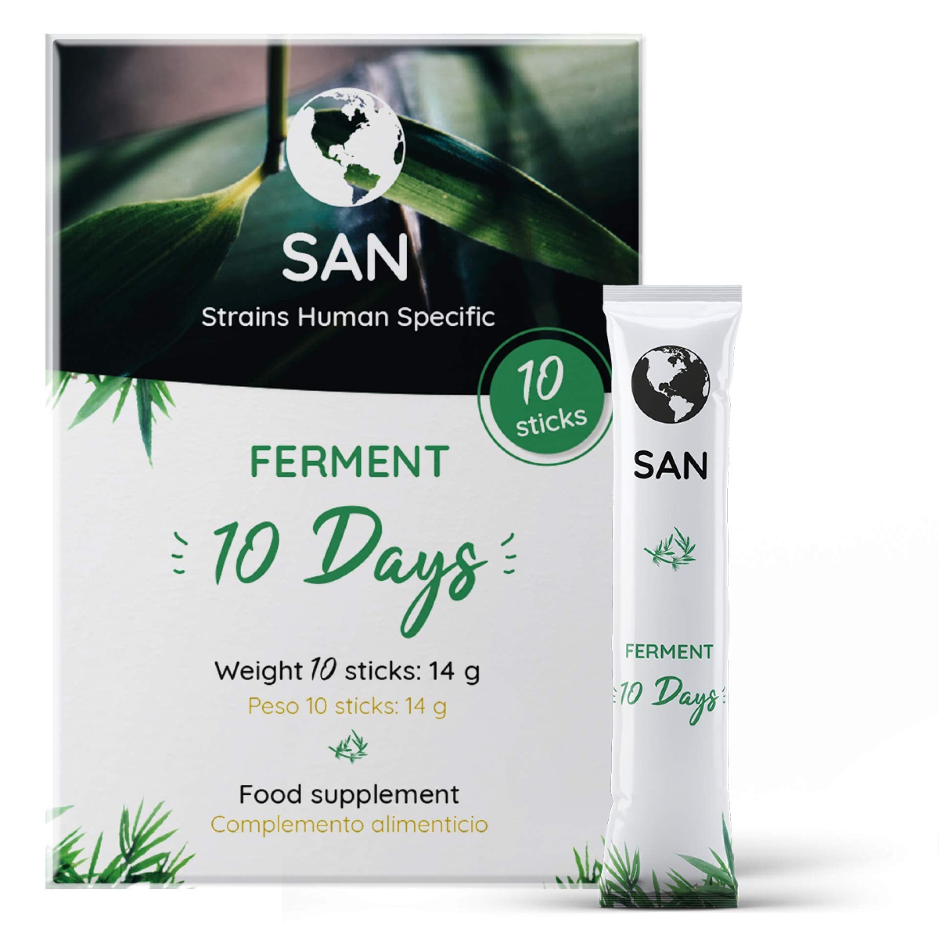 Detalles: Descripción del producto Fortifica y aumenta la flora intestinal. Los fermentos que contiene el producto son de origen humano. Las cepas se extraen mediante punción del intestino de personas sanas, que pasan por controles y dietas exhaustivas. Esas cepas extraídas pasan posteriormente por el laboratorio para su fermentación bacteriana. Precauciones: No se han descrito. Composición: L. acidophilus : 2×109 UFC/g B. longum : 2×109 UFC/g L. casei (defensis) : 2×109 UFC/g L. reuteri : 2×109 UFC/g S. thermophilus : 2×109 UFC/g Antiaglomerante: Estereato de magnesio, dióxido de silicio. Agente de carga: Maltodextrina. Modo de empleo: Tomar 1 sobre diario diluido en agua o zumo de frutas (con el estómago vacío). Indicaciones FERMENTOS NATURALES ESPECIFICOS Ingredientes L. acidophilus: 25 × 10^9 CFU/stick B. longum: 25 × 10^9 CFU/stick L. casei (defensis): 25 × 10^9 CFU/stick L. reuteri: 25 × 10^9 CFU/stick S. thermophilus: 25 × 10^9 CFU/stick Valor energético: Agente antiaglomerante: estearato de magnesio, dióxido de silicio Energy/Energía: 1428 kJ (342 kcal) - Lipid.: 0,53 g - Carbohydrates/Glúcidos: 7,02 g - Protid.: 77,19 g dirección Diluir el contenido de 1 stick en agua por día (en ayunas). No exceda la dosis diaria indicada. No es un sustituto de una dieta variada y equilibrado o con un estilo de vida saludable. Mantener fuera del alcance de los niños pequeños. Mantener alejado del calor, la humedad y la luz. Este suplemento alimenticio no es un medicamento.