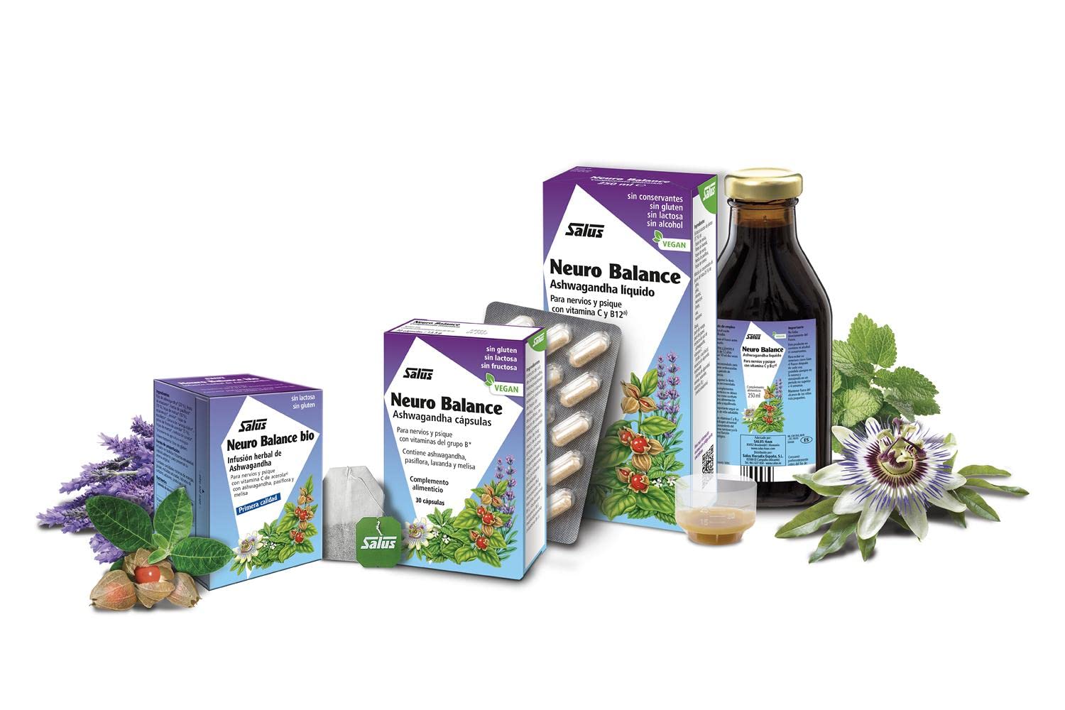 Salus - Neuro Balance Infusión Herbal - 15 Sobres - Contribuye al Buen Funcionamiento del Sistema Nervioso - Elaborado a Base de Ashwagandha, Pasiflora y Melisa - Contiene Vitamina C